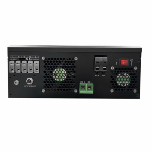 Мощность 3000 ВА / 3000 Вт. Имеет встроенный PWM контроллер для зарядки от солнца (50А, макс.1400Вт)